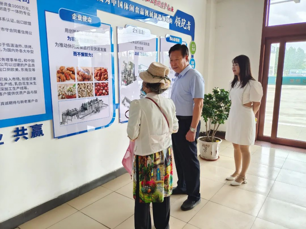 近日,中國食品工業(yè)協(xié)會堅果果干專業(yè)委員會常務(wù)副會長翁洋洋率領(lǐng)協(xié)會工作人員一行,蒞臨我司進行考察調(diào)研,并就相關(guān)設(shè)備技術(shù)進行指導(dǎo)工作。